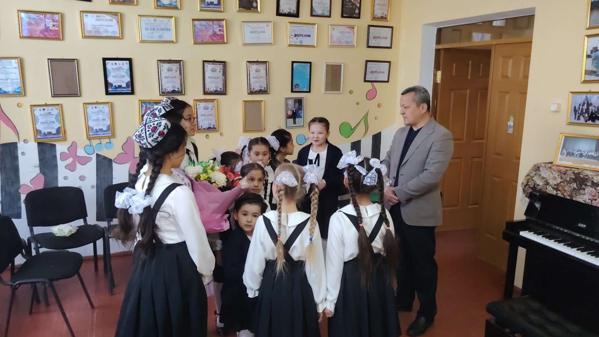 –Barcha sohalarda bо‘lgani kabi madaniyat va san’at sohasida ham bilim olish, oliy ma’lumotli bo‘lishi hamda respublika va xalqaro miqyosdagi tanlov va festivallarda ishtirok etish uchun barcha imkoniyatlar yaratib berilmoqda, – deydi boshqarma boshlig‘i Azamat Darxanov. – Buning natijasida yosh о‘qituvchi va о‘quvchilarimiz ko‘plab ijodiy tanlovlar va festivallarda jonajon O‘zbekistonimizning yuzini yorug‘ qilmoqda. Ushbu yutuqlar bee’tibor qoldirilayotgani yо‘q. Mana bir misol, ushbu maktabda ham endi “Zulfiya” nomidagi davlat mukofoti sovrindori bor. Men shunday davlat mukofoti bilan mukofotlangan о‘qituvchilar viloyatimizdagi barcha bolalar musiqa va san’at maktablarida ham bо‘lishini niyat qilaman – deydi boshqarma boshlig‘i.