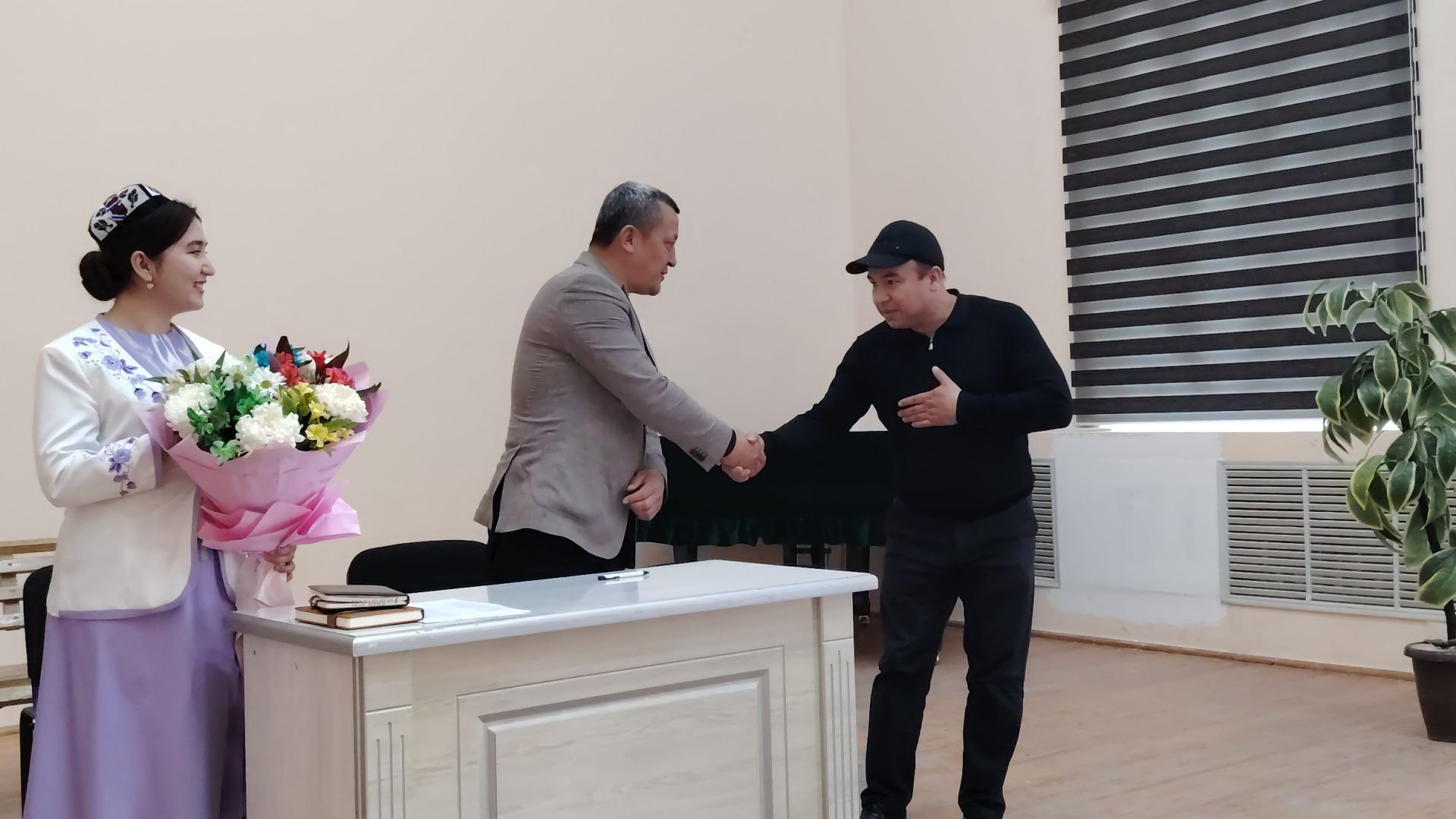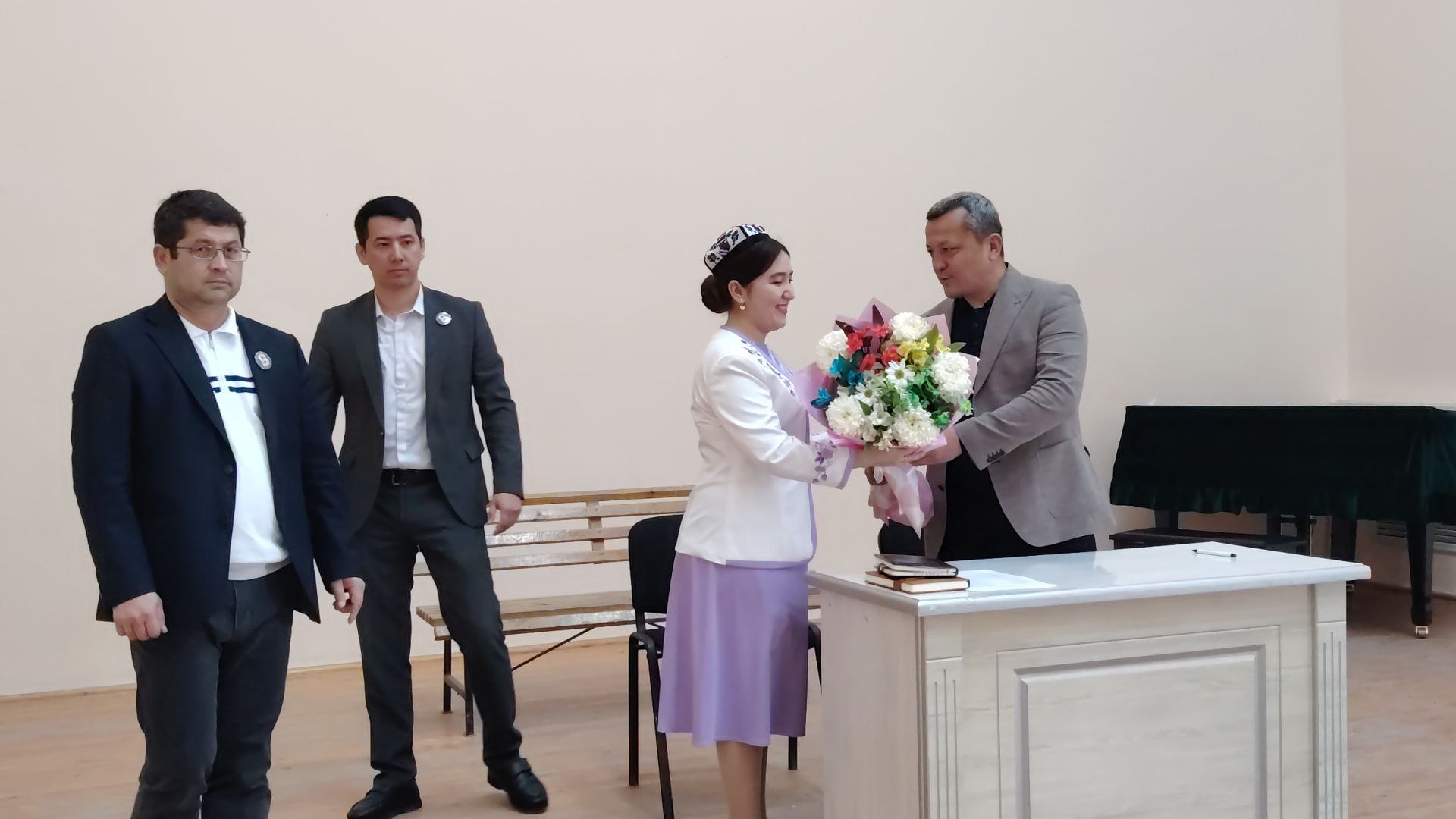 Yig‘ilish davomida A.Darxanov tomonidan joriy yilda “Zulfiya” nomidagi davlat mukofotiga loyiq topilgan fortepiano о‘qituvchisi Mehribon Abdurazzoqova hamda uning ustozi Zohid Abdullayevlarga minnatdorchilik bildirilib, ularning faoliyatiga muvaffaqiyatlar tiladi.