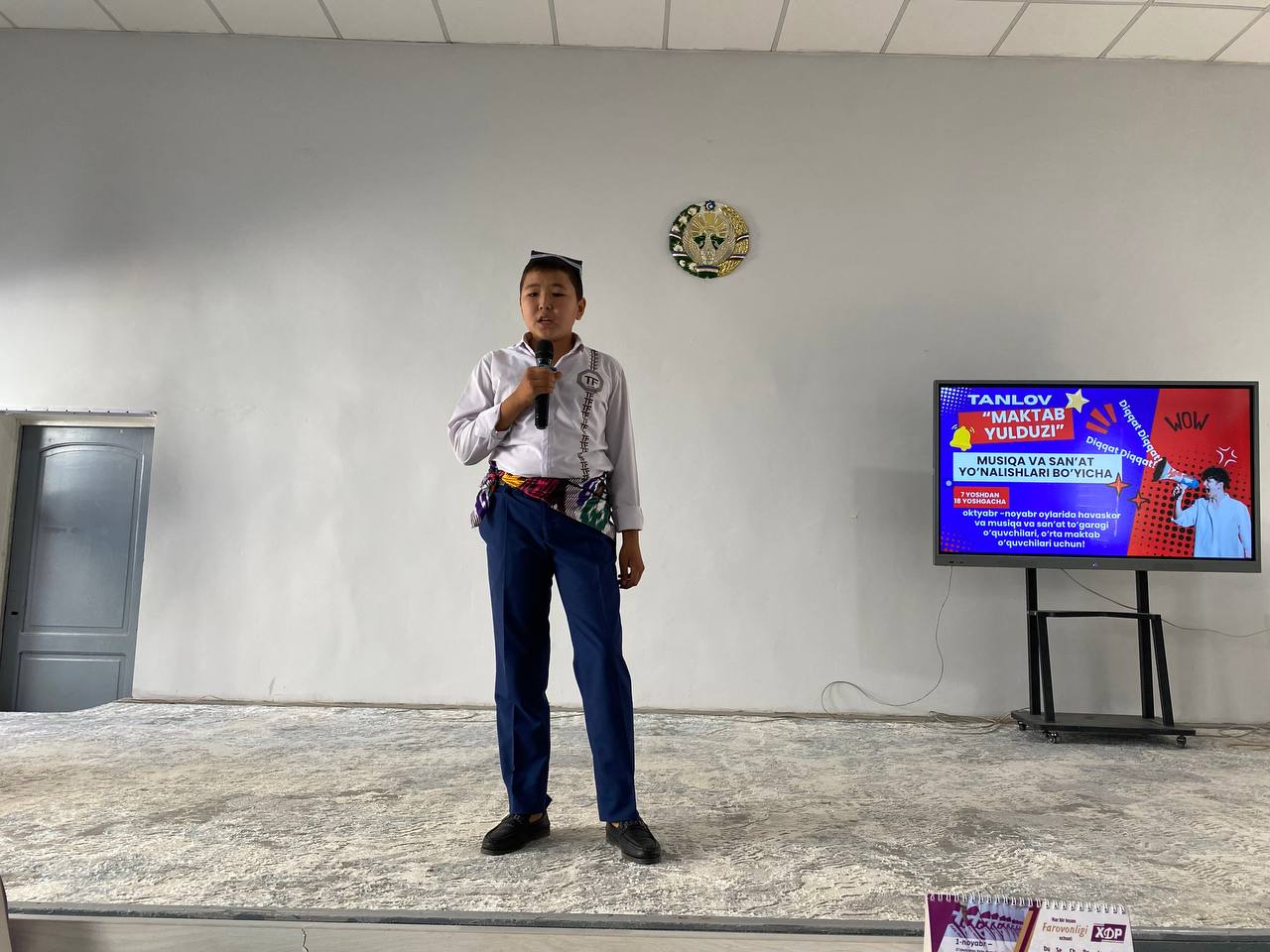O‘zbekiston Respublikasi Prezidentining 15.11.2024-yildagi PQ-391-son qaroriga asosan yosh iqtidorlarni kashf etish va ularning ijodini keng targ‘ib etish maqsadida "Maktab yulduzi" tanlovi o‘tkazilmoqda.